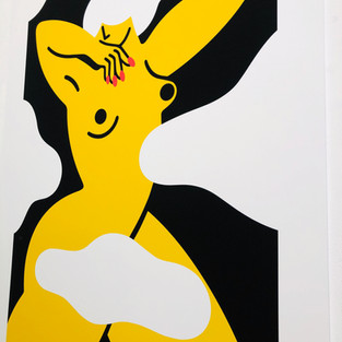 The prints are eye-catching with bold usage of vibrant colours and thick, distinctive black lines. There is contrast both in the stark shapes which represent the delicate female form, and in the energy which exudes from the passive reflection of the characters. By using a clean, graphic approach to her art, Marylou aims to delivers a powerful message to her audience.